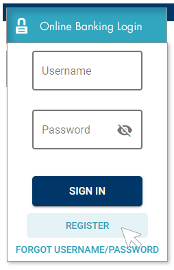 On desktop, click the Online Banking Login button on RiverLand's website. Then, click Register.